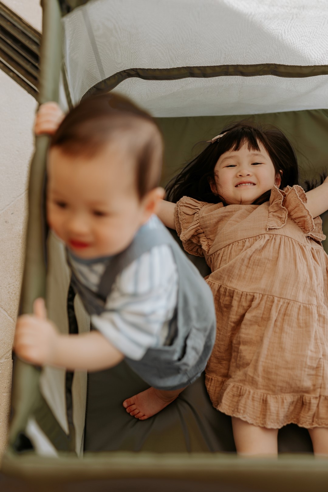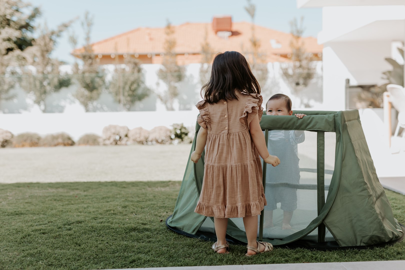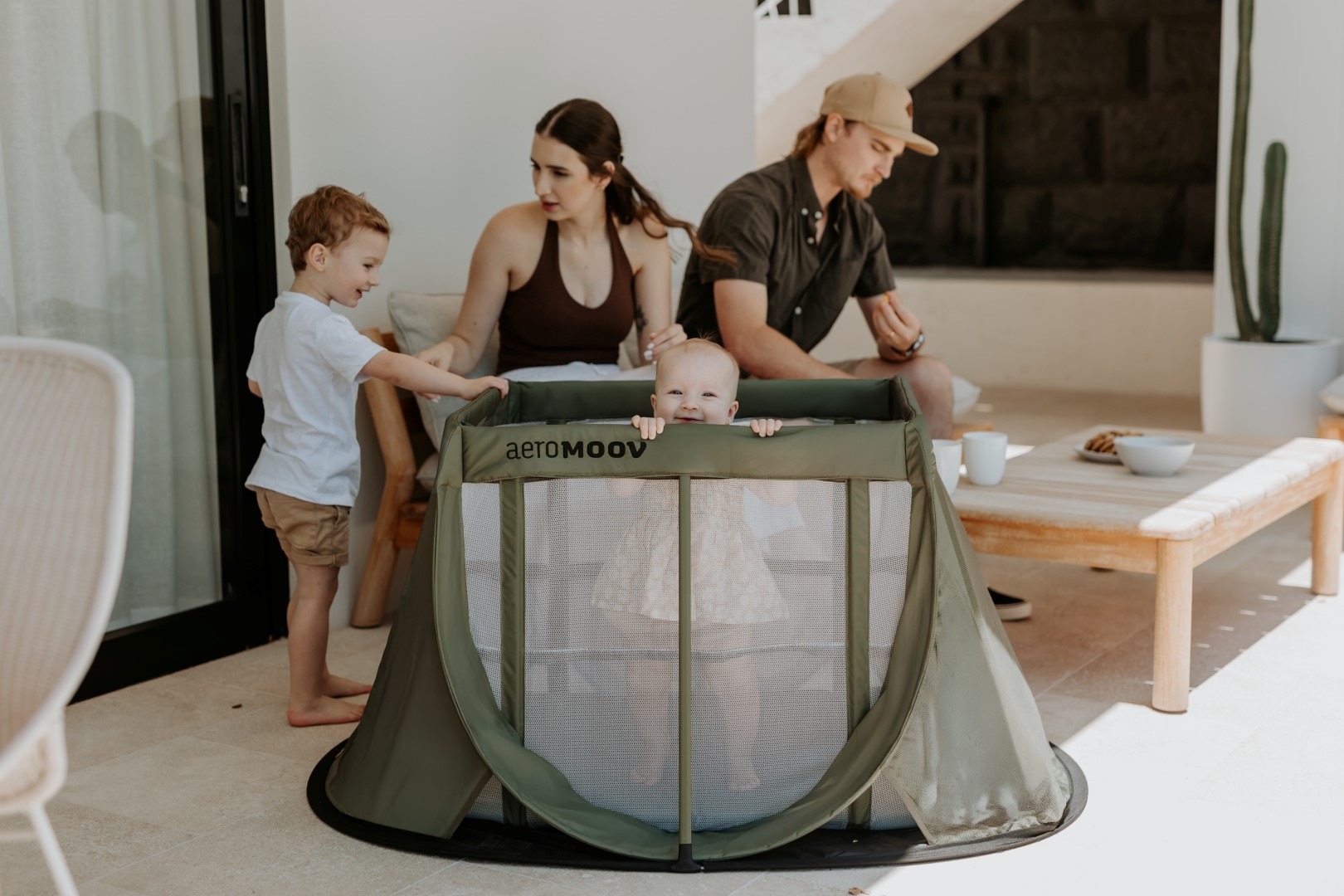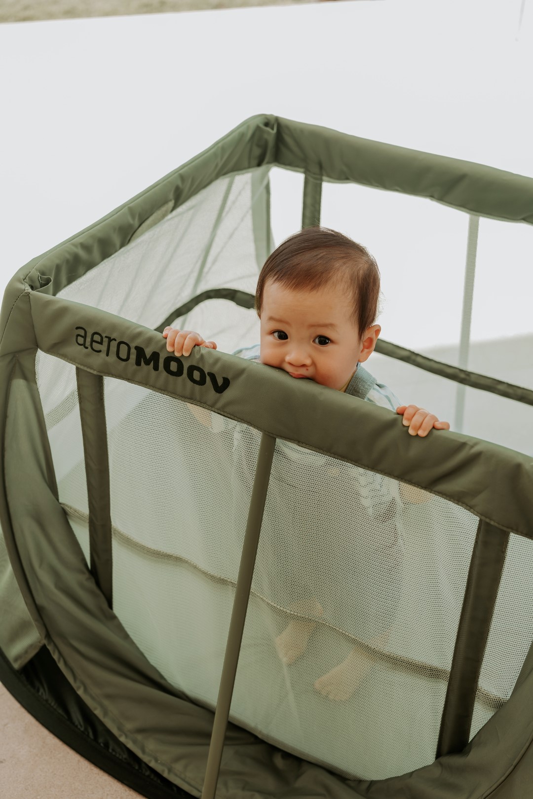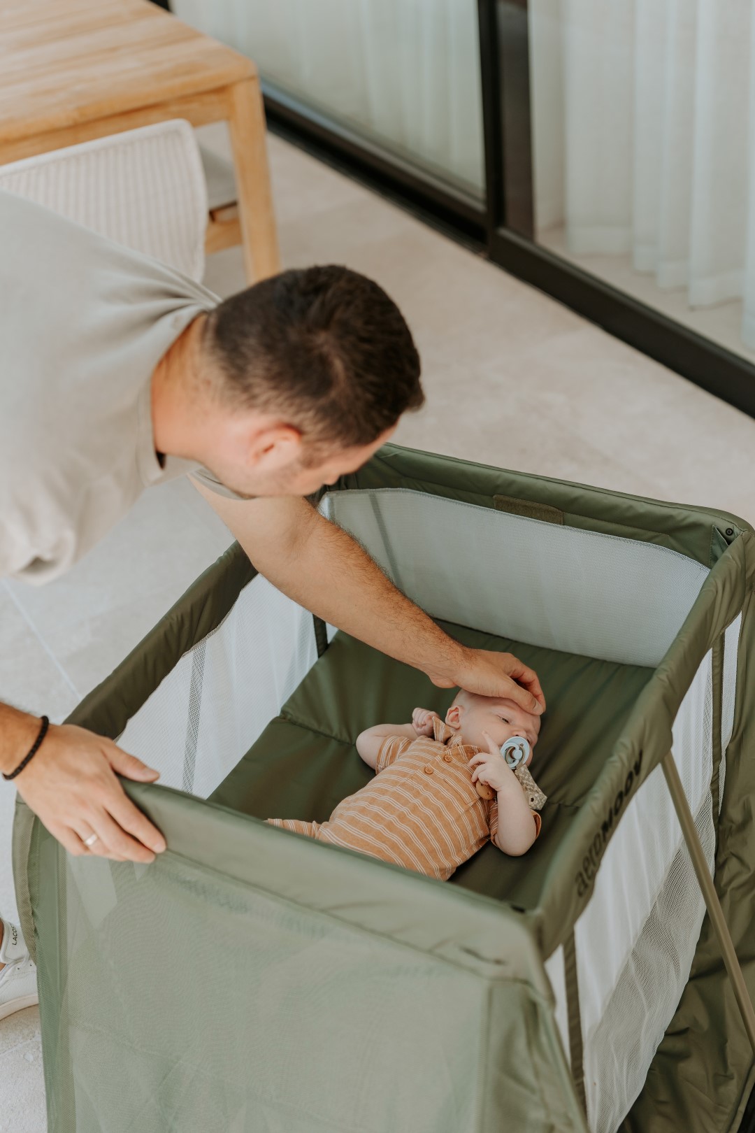 Lako rasklapanje i sklapanje u samo 2 sekunde AeroMoov putni krevetić može se postaviti i sklopiti za nekoliko sekundi! Lako je jer se krevetić sam rasklapa – dovoljno je samo raširiti ga. Za razliku od teških putnih krevetića, AeroMoov ne zahtijeva fizičko naprezanje. Lagan AeroMoov putni krevetić teži manje od 5 kg. Ovaj putni krevetić lagan je, praktičan i lako se pakira u prikladnu torbu za nošenje što znači da ga možete ponijeti bilo kuda. Čak i stariji brat ili sestra ga lako mogu nositi te (ra)sklopiti. Kvalitetan madrac za optimalnu udobnost AeroMoov putni krevetić ima čvrsti madrac od PU pjene debljine 3 cm što osigurava dobru potporu leđa. Putni krevetić zadovoljava najstrože sigurnosne standarde za bebe EN716-1-2008 i A1-2013. Pripadajuća plahta za madrac prodaje se zasebno. 2 razine za novorođenčad i djecu AeroMoov putni krevetić ima dvije razine: nisku i srednju razinu. Lakše dostupna srednja razina namijenjena je novorođenčadi do 2. mjeseca starosti. Ona smanjuje saginjanje kod podizanja bebe iz krevetića. Razina madraca lako se prilagođava. Kad dijete može uspravno sjediti ili teži više od 6 kg, vrijeme je da prijeđete na nižu razinu. Vaše dijete uvijek će se sigurno igrati i spavati. Dimenzije madraca su 110x60cm. Stoga se niža razina može sigurno koristiti sve dok dijete ne uspije samostalno izaći iz krevetića. Još jedna pametna značajka su dva utora za Vaše noge ispod krevetića koji će pružiti dodatnu potporu prilikom podizanja djeteta iz krevetića. Kompaktnost Aeromoov putni krevetić vrlo se kompaktno sklapa te se jednostavno pohranjuje u elegantnu i tanku torbu za nošenje. Putni krevetić možete spremiti u najuže prostore: pored ormara, ispod stepenica ili na bilo koje mjesto koje možete pronaći. Naravno, lagan putni krevetić savršen je za putovanja i automobil. Za unutarnje i vanjske prostore Kod kuće ga možete koristiti u vrtu, na balkonu, u dnevnom boravku, kuhinji, spavaćoj sobi ili uredu. U kratkom vremenu možete stvoriti savršeno okruženje za igru ili spavanje. A noćenje kod bake i djeda ili posjet prijateljima? Putni krevetić lako je ponijeti sa sobom, a Vašem će djetetu omogućiti ugodno spavanje gdje god da jeste. Izvrstan je za odmor i plažu: zahvaljujući mrežastim stranicama možete neprestano paziti na svoje dijete dok se igra i spava. Otrkijte i dodatke za AeroMoov putni krevetić! Kako bi korištenje AeroMoov putnog krevetića bilo još bolje, dostupni su Vam dodaci: Krović za zaštitu od sunca, mreža protiv kukaca, plahta i zaštita za madrac koji se prodaju zasebno.