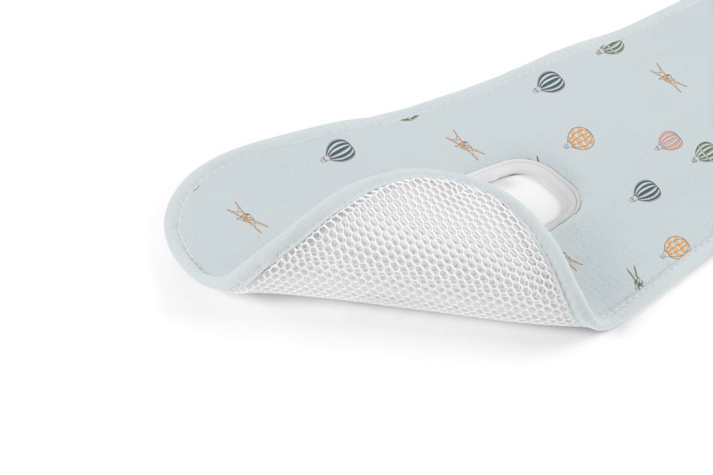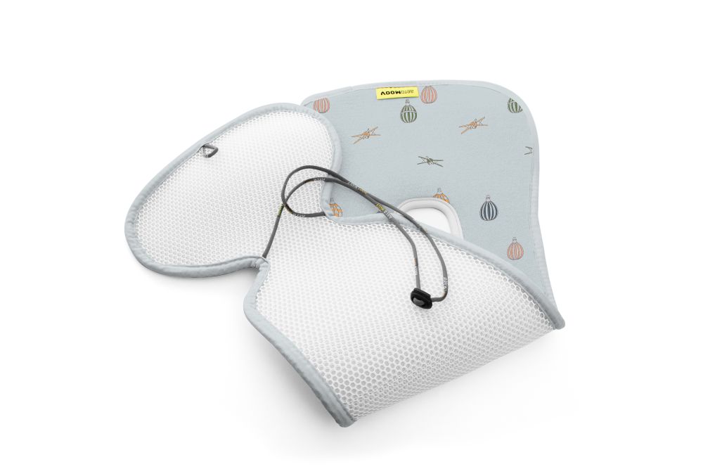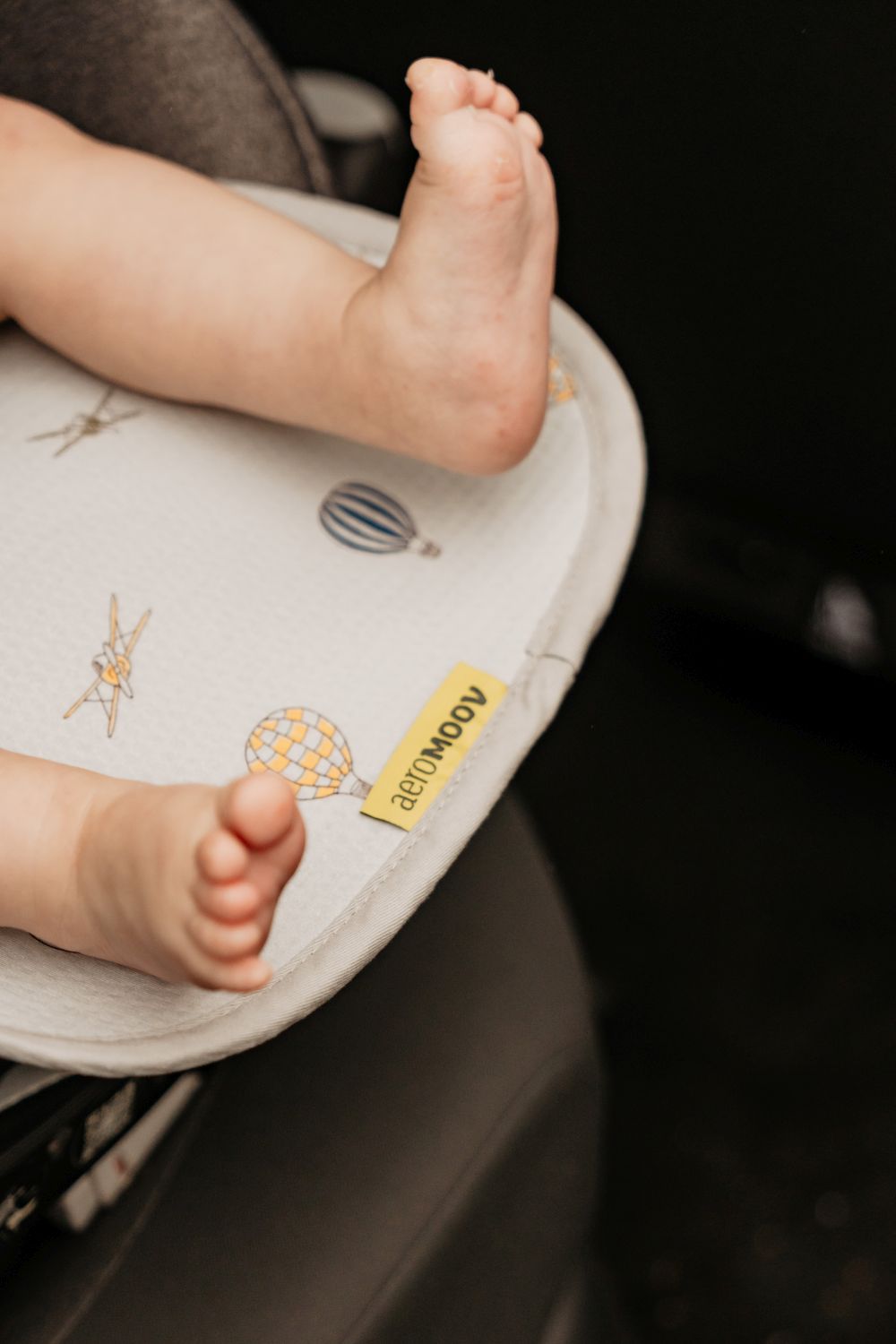 AeroMoov se pobrinuo da ljetne šetnje i izleti budu ugodni i bezbrižni. AeroMoov zračna podloga posebno je dizajnirana kako bi osigurala da se djeca manje znoje i ne pregriju u autosjedalicama ili kolicima. Posebna 3D tehnologija osigurava cirkulaciju zraka ispod djeteta, te održava dijete svježim i suhim tokom ljetnih mjeseci i visokih temperatura. Osigurava stalnu cirkulaciju zraka oko leđa, nogu i glave djeteta Upija vlagu i znoj Smanjuje rizik od pregrijavanja Mekana, udobna i periva u perilici na 40°C Karakteristike Jedinstvena 3D tehnologija Jedinstvena 3D tehnologija zračne podloge raspršuje višak topline i uvodi svježi zrak. Kako se 3D zračni sloj ne može komprimirati, on osigurava stalnu cirkulaciju zraka. Na taj način djetetova leđa i kosa ostanu suha, a vožnja u sjedalicama i kolicima ugodna i svježa. Mekani, upijajući sloj od organskog pamuka Dijete sjedi na mekom sloju organskog pamuka koji upija sav višak znoja. Zračna podloga je izuzetno udobna, a korištenjem podloga štitimo originalne presvlake autosjedalica i kolica, te će dulje izgledati nova i lijepa.
