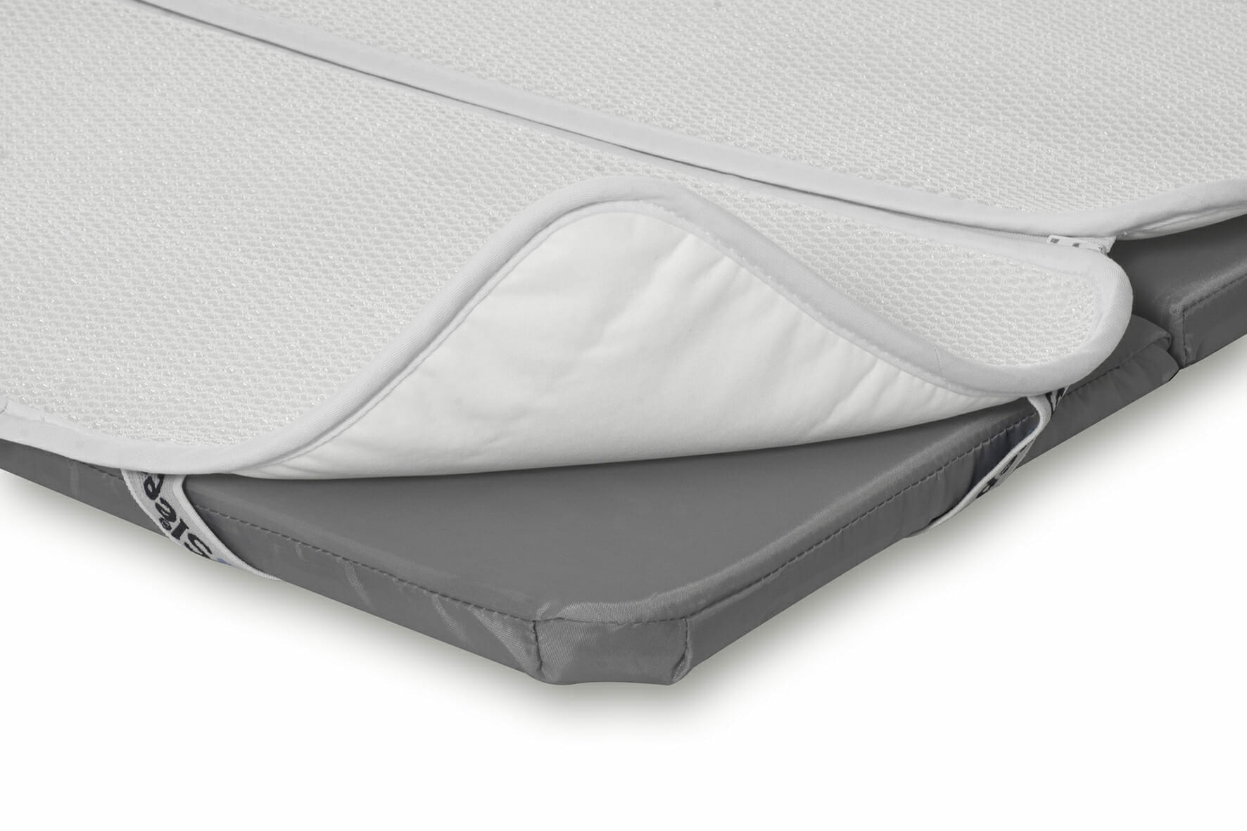 Sigurno disanje, regulira temperaturu i upija vlagu Neovisni istraživački centri podvrgli su 3D Protector opsežnim znanstvenim ispitivanjima. On uvijek omogućuje vašem djetetu sigurno disanje, regulira toplinu i upija vlagu. Svaki sloj je dizajniran da omogući vašoj bebi da spava cijelu noć sigurno i u higijenskim uvjetima. 3D prozračni sloj omogućuje slobodno disanje i odvođenje viška topline. Osim dobrog disanja i sigurne temperature, vaše dijete je cijelo vrijeme suho. Sva vlaga prolazi kroz 3D strukturu do upijajućeg sloja kako se vaš mališan ne bi ranije probudio zbog iritacije kože. Zahvaljujući zaštitnom sloju, madrac ostaje suh, čist i bez bakterija i alergena. Perivo u perilici rublja na 60°! Kako funkcionira AeroSleep® tehnologija? AeroSleep® tehnologija sastoji se od 3 sloja koji vašem djetetu uvijek omogućuju slobodno disanje, održavanje odgovarajuće temperature i suhoću. Svaki sloj AeroSleep 3D tehnologije ima važnu funkciju kako bi vaše dijete bilo sigurno i dobro tijekom spavanja: 1. 3D struktura -> Ovaj sloj osigurava propusnost zraka. Zahvaljujući čvrstoj strukturi 3D saća, vaše dijete leži na sloju zraka koji osigurava da uvijek može slobodno disati. Taj sloj zraka također preuzima temperaturu vašeg djeteta i održava je konstantnom. 2. Upijajući sloj -> Ovaj sloj održava vaše dijete suhim i sprječava iritaciju kože. Vlaga prolazi kroz 3D strukturu i zatim je zadržava upijajući sloj. 3. Vodonepropusni sloj -> Drži bakterije i alergene podalje od vašeg djeteta kako bi se osigurala optimalna higijena!