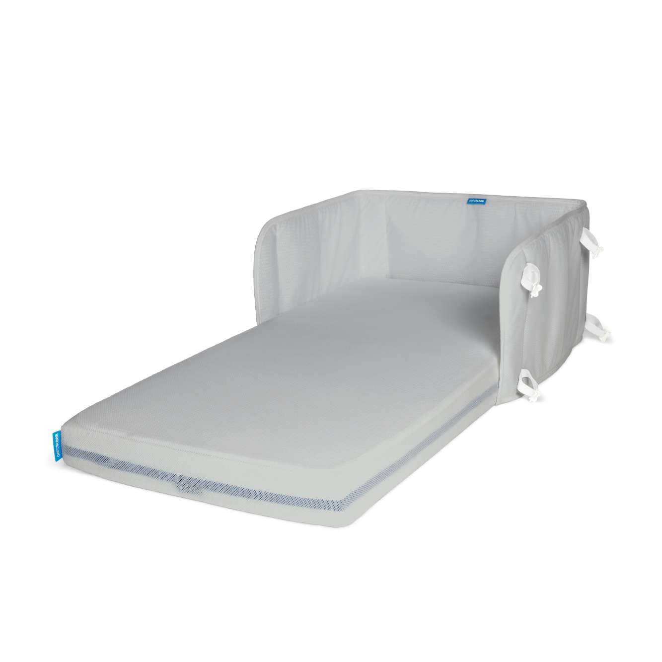 Prozračna alternativa klasičnoj zaštiti za krevet Zahvaljujući AeroSleep® 3D tehnologiji ovo je prozračna alternativa klasičnim zaštitama za krevet. Jedinstvena zaštita za krevet AeroSleep® sastoji se od 3 sloja i štiti vaše dijete na najsigurniji mogući način. 3D tehnologija osigurava slobodno disanje kroz tkaninu, čak i kada tkanina je vlažna. Ova prekrasna zaštita za krevet mekana je na dodir i može se prati u perilici rublja na 40°C. Lako se postavlja i ostaje čvrsto i sigurno pričvršćena za krevete ili krevetiće s šipkama duž sve 4 strane. Kako funkcionira AeroSleep® tehnologija? AeroSleep® tehnologija sastoji se od 3 sloja koji vašem djetetu uvijek omogućuju slobodno disanje, održavanje odgovarajuće temperature i suhoću. Svaki sloj AeroSleep 3D tehnologije ima važnu funkciju kako bi vaše dijete bilo sigurno i dobro tijekom spavanja: 1. 3D struktura -> Ovaj sloj osigurava propusnost zraka. Zahvaljujući čvrstoj strukturi 3D saća, vaše dijete leži na sloju zraka koji osigurava da uvijek može slobodno disati. Taj sloj zraka također preuzima temperaturu vašeg djeteta i održava je konstantnom. 2. Upijajući sloj -> Ovaj sloj održava vaše dijete suhim i sprječava iritaciju kože. Vlaga prolazi kroz 3D strukturu i zatim je zadržava upijajući sloj. 3. Vodonepropusni sloj -> Drži bakterije i alergene podalje od vašeg djeteta kako bi se osigurala optimalna higijena! Tehnički podaci Što je u kutiji? Zaštita za krevet s kopčama