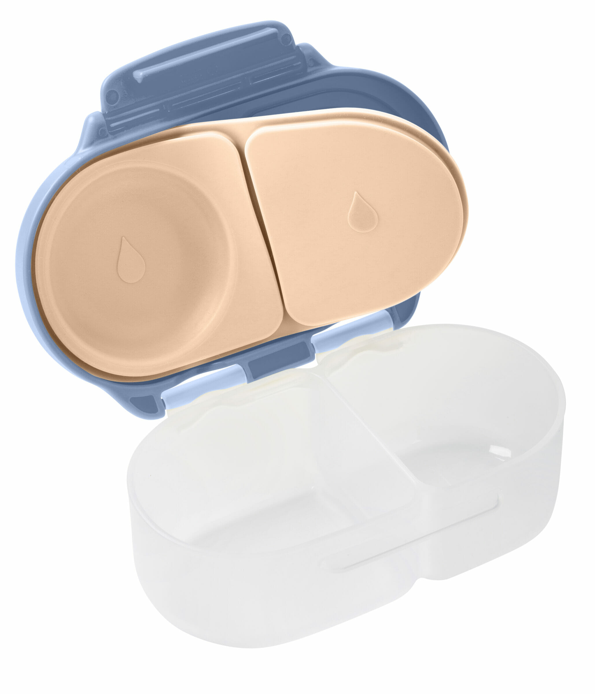 Na putu ste? Uz našu posudicu, vrijeme za užinu postaje najbolji dio dana. Savršeno rješenje za male porcije, koje utažuju glad u parku, na putu ili na plaži. Fleksibilan poklopac omogućava pospremanje cijele voćke u kutijicu, bez potrebe za rezanjem, čime se održava njena svježina i dugotrajnost. Bez brige možete spakirati čak i tekuće namirnice, poput jogurta ili umaka, jer su pretinci i poklopci nepropusni. Dijelovi posudice se mogu rastaviti, što omogućava održavanje higijene, a kopča za otvaranje/zatvaranje je dovoljno velika da je i dječji prstići mogu sami otvoriti. Posudica je izrađena od polipropilena i silikona, što je čini sigurnom za pohranu u zamrzivač i olakšava vam pripremu tjednih obroka.