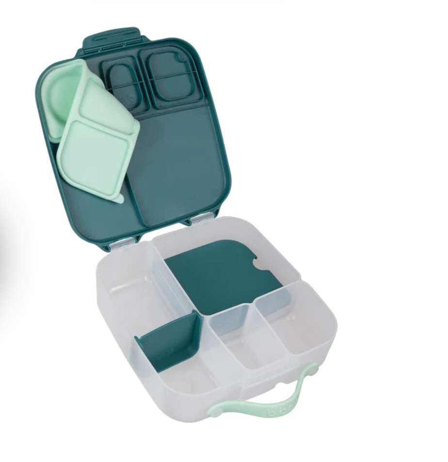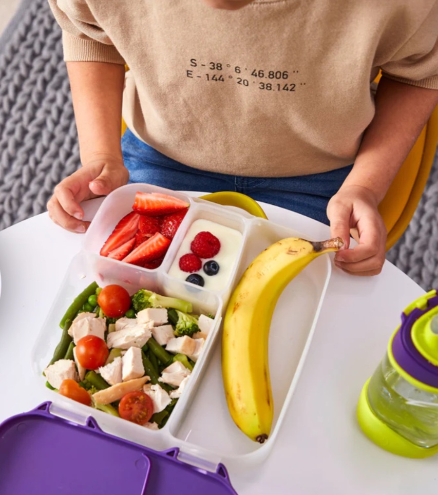 Djeca vole izbor različite vrste hrane tijekom dana, stoga smo dizajnirali kutiju za ručak koja roditeljima i djeci nudi veću fleksibilnost. Jedinstveni fleksibilni poklopac za voće omogućuje vam pohranjivanje cijele jabuke. Budući da je poklopac savitljiv, prilagođava se obliku vašeg voća – stoga nema potrebe rezati voće na manje komade! Prilagodljiva pregrada klizi i tako vam omogućava da odredite veličinu pretinca po potrebi ili da ju uklonite da u nju stane npr cijela banana. Uz b.box lunchbox, samo nebo je granica!