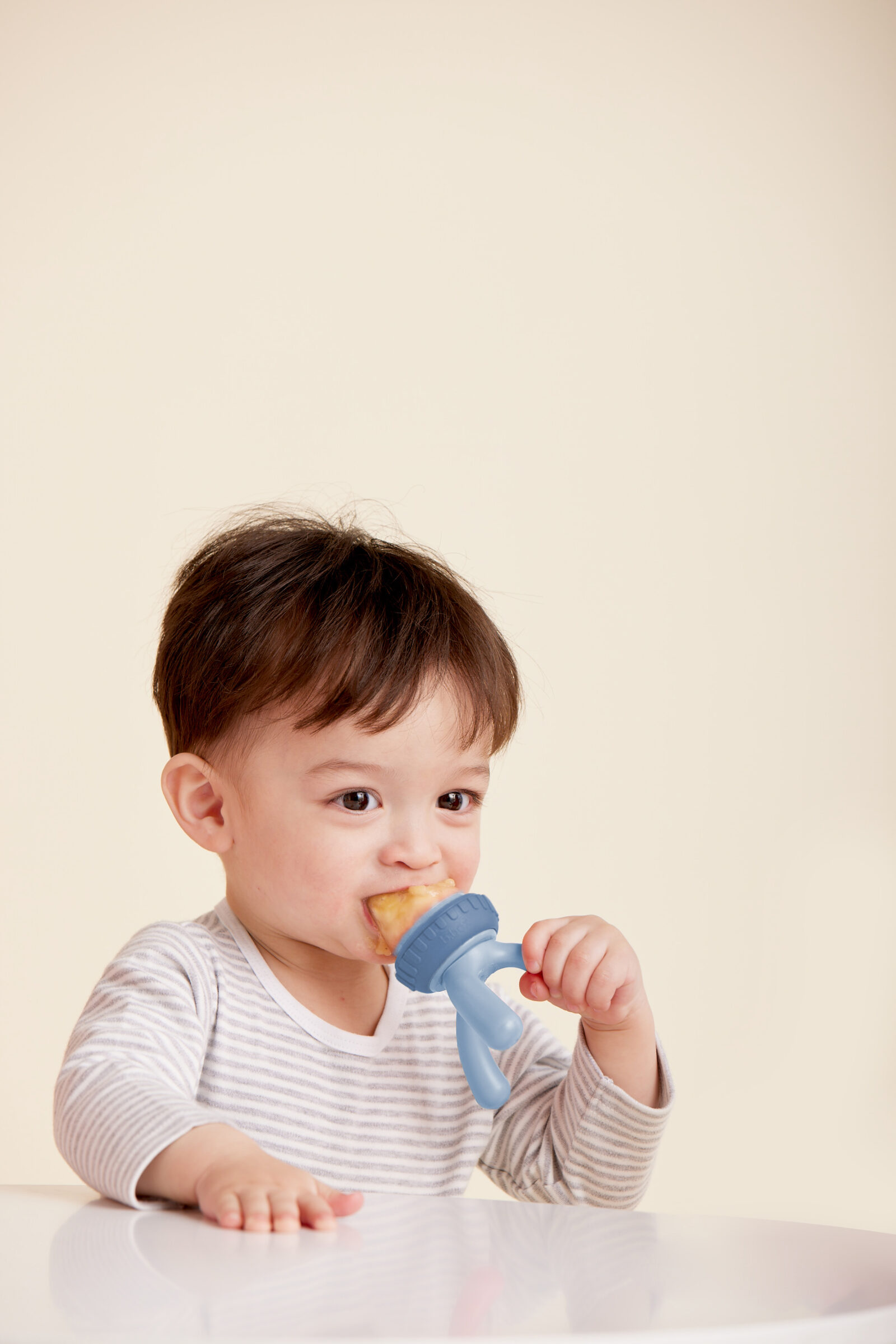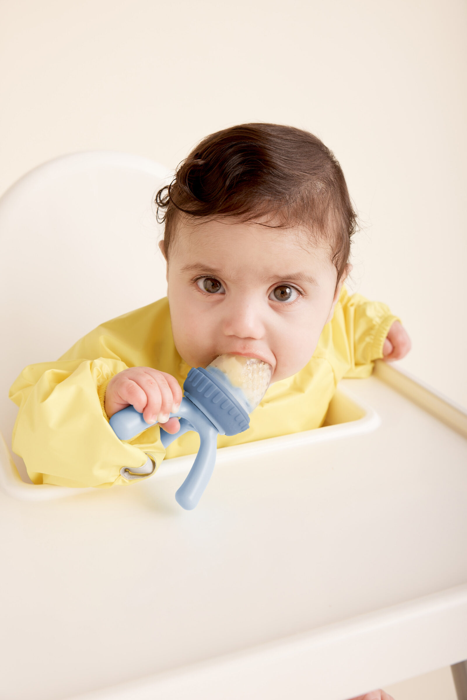 Silikonska hranilica za svježe voće idealna je za upoznavanje najmanjih s novim okusima. Vrlo ju je lako održavati, periva je u perilici posuđa i nježna za bebine desni. Dizajnirana je na način da je djeca mogu sama držati i otkrivati nove okuse na zabavan i siguran način. Lubenica, meko voće, rashlađeno kuhano povrće…opcija je puno. Jednostavno skinite silikonski pretinac, napunite ga hranom, vratite natrag i uživanje u hrani može početi. Praktična ručka pomaže malenima u čvrstom hvatu prilikom korištenja, no služi i kao nožice na koje se postavi kada nije u upotrebi, kako bi hranilica ostala čista i ne bi dodirivala površinu na koju je odložena. Uz hranilicu dolazi i poklopčić za higijenskije pohranjivanje hranilice. Ova simpatična hranilica može se sterilizirati u parnom sterilizatoru.