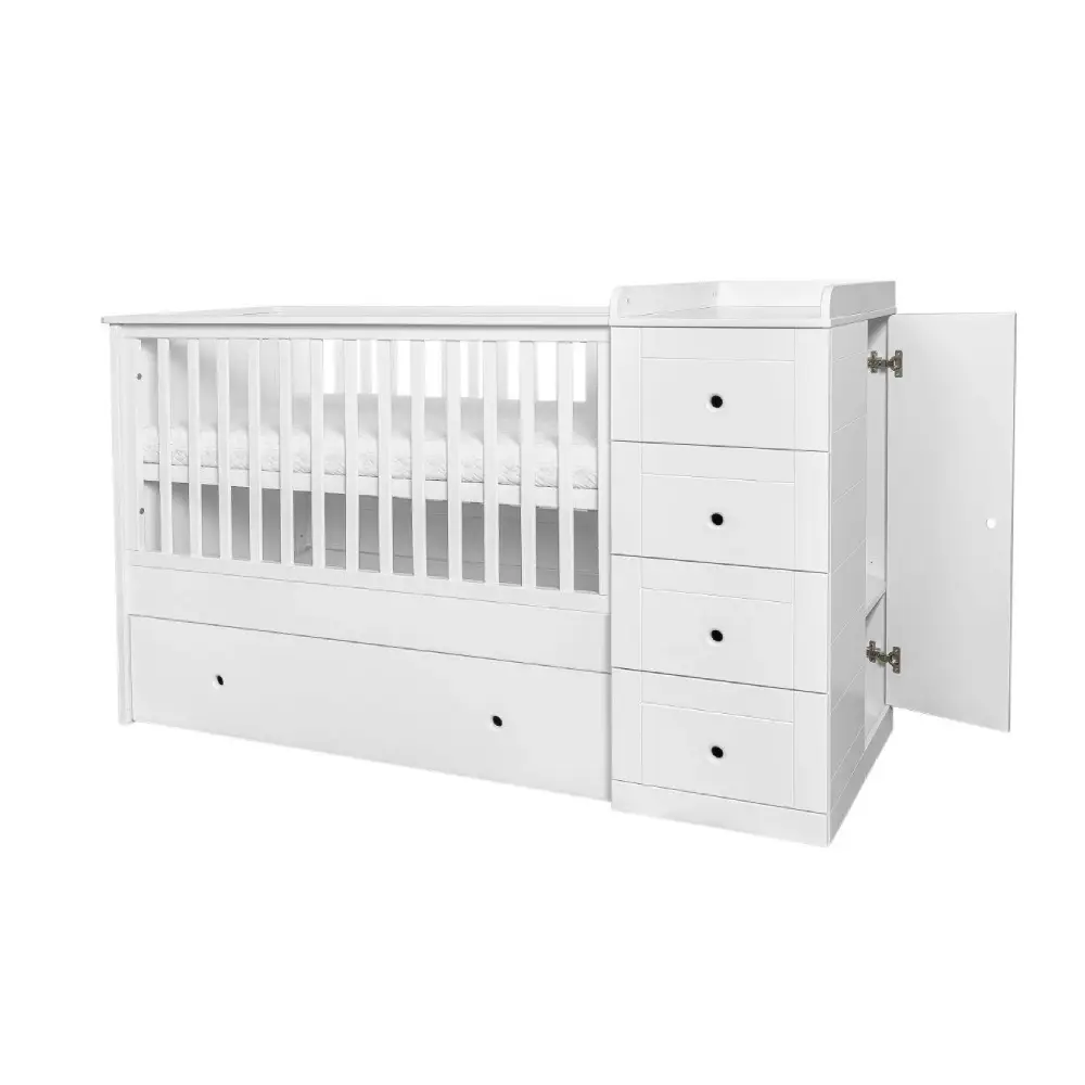 – mogućnost postavljanja komode i ormarića s lijeve ili desne strane krevetića