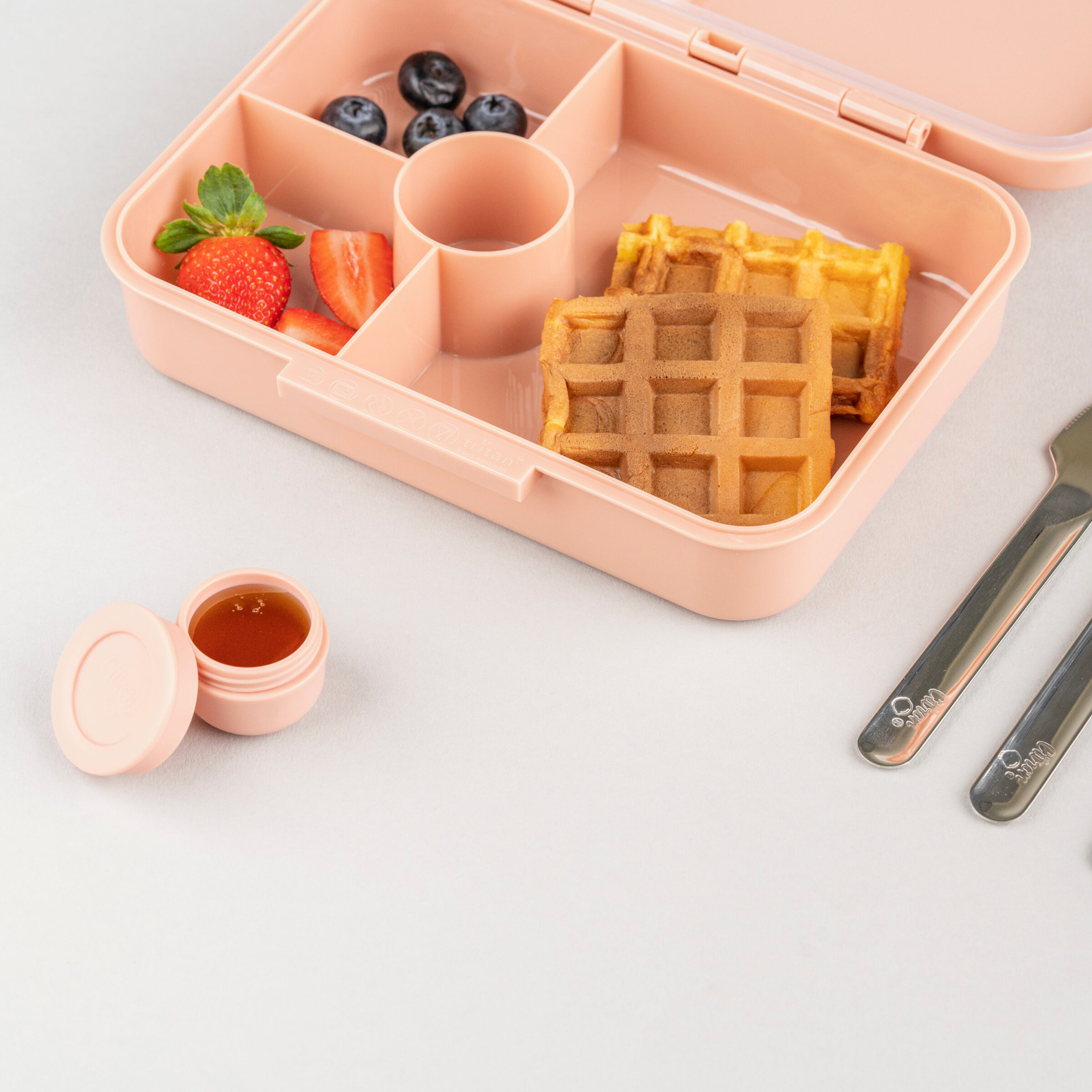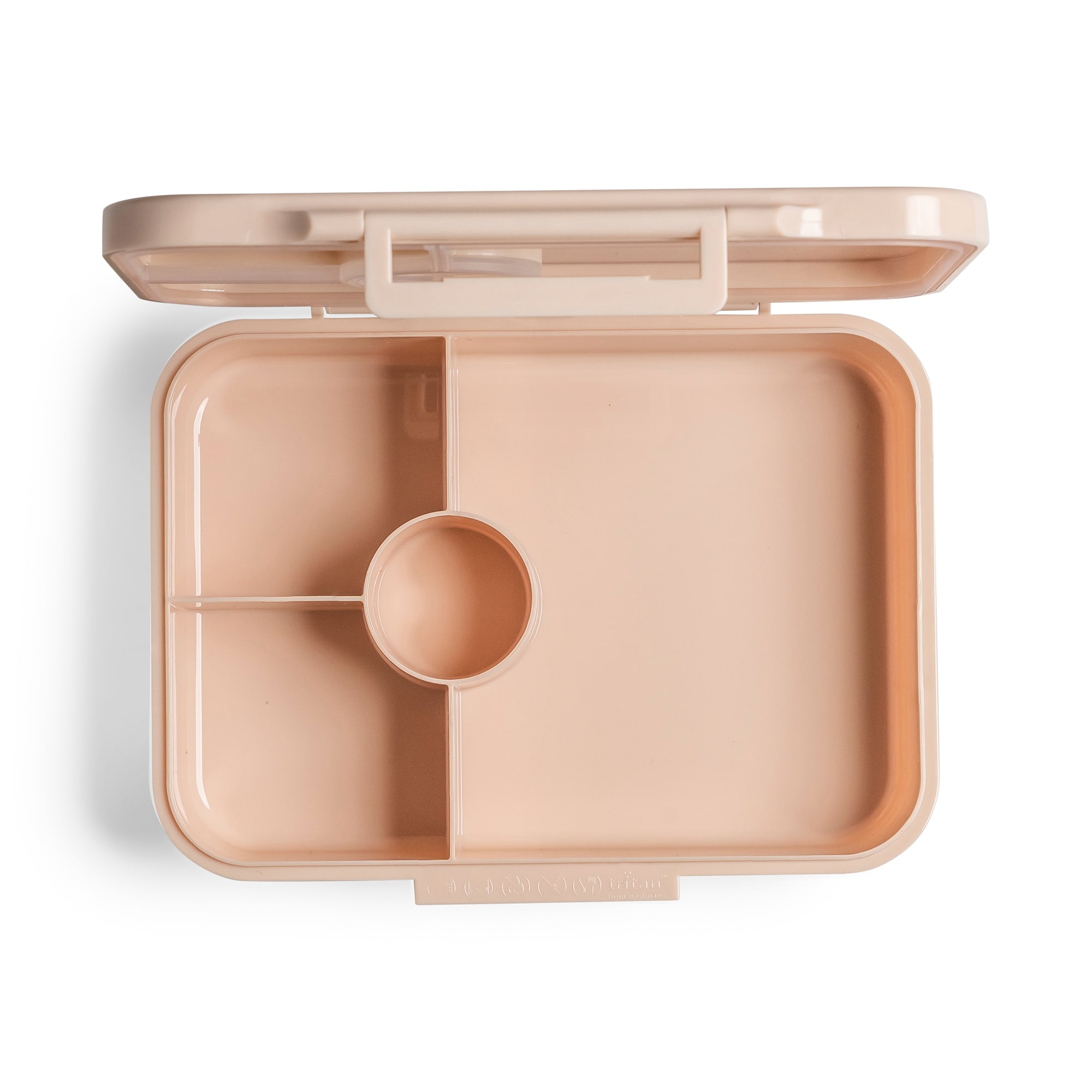 Ova lagana i kompaktna kutija za užinu zapremnine do 700 ml dizajnirana s mehanizmom koji se lako otvara čak i malim rukama, zbog čega je prikladna za djecu od 18 mjeseci i starije. Pohranjuje hranu u 4 odvojena odjeljka, u stilu bento kutije za ručak Održava torbu za ručak suhom i čistom pomoću nepropusnog zatvarača Napravljeno bez otrovnih materijala (bez BPA, ftalata i olova) Podstavljena silikonom koji se može ukloniti radi lakšeg pranja