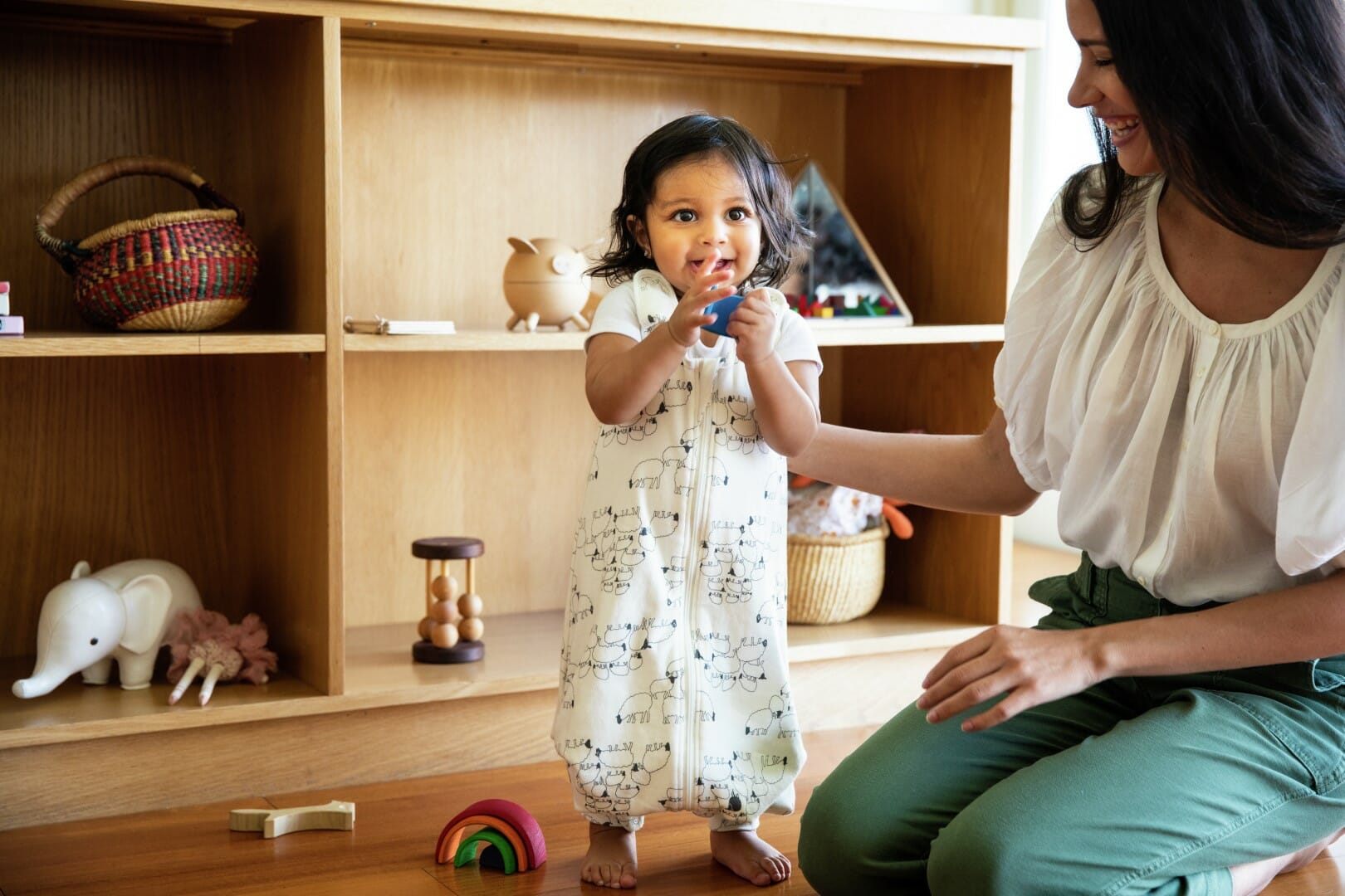 Ergobaby vreća za spavanje On The Move nosiva je dekica s dvije funkcije. Izrađena od ultra mekog i 100%-nog prozračnog pamuka u kojoj će vašem djetetu biti ugodno i toplo dok spava u svom krevetiću ili izvan njega. Vreća za spavanje ima podesive naramenice za jednostavno oblačenje i skidanje, a dvosmjerni patentni zatvarač omogućuje brzu promjenu pelene. Uz otvore za noge koji se mogu sakriti vreća za spavanje jednostavno postaje vreća za hodanje – savršeno za tek prohodalu djecu uvijek u pokretu!