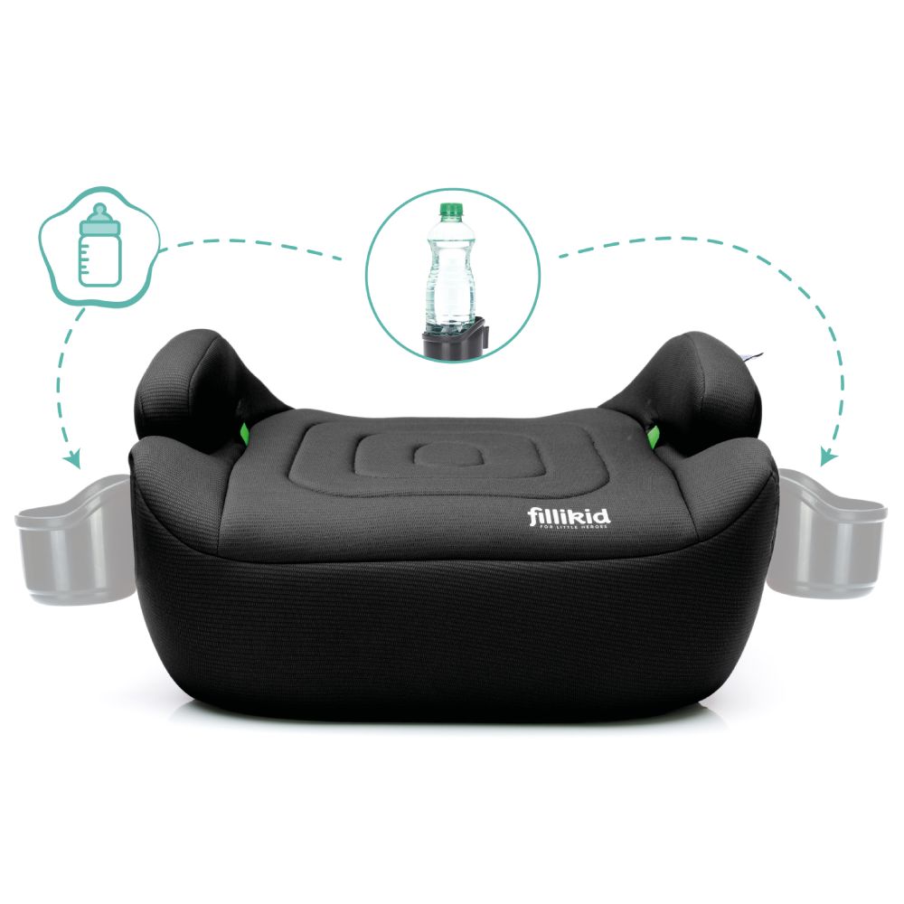 Fillikid Booster/sjedalo za auto Flip deluxe (125-150 cm) s podesivim Isofix priključkom i držačem za čašu, crna