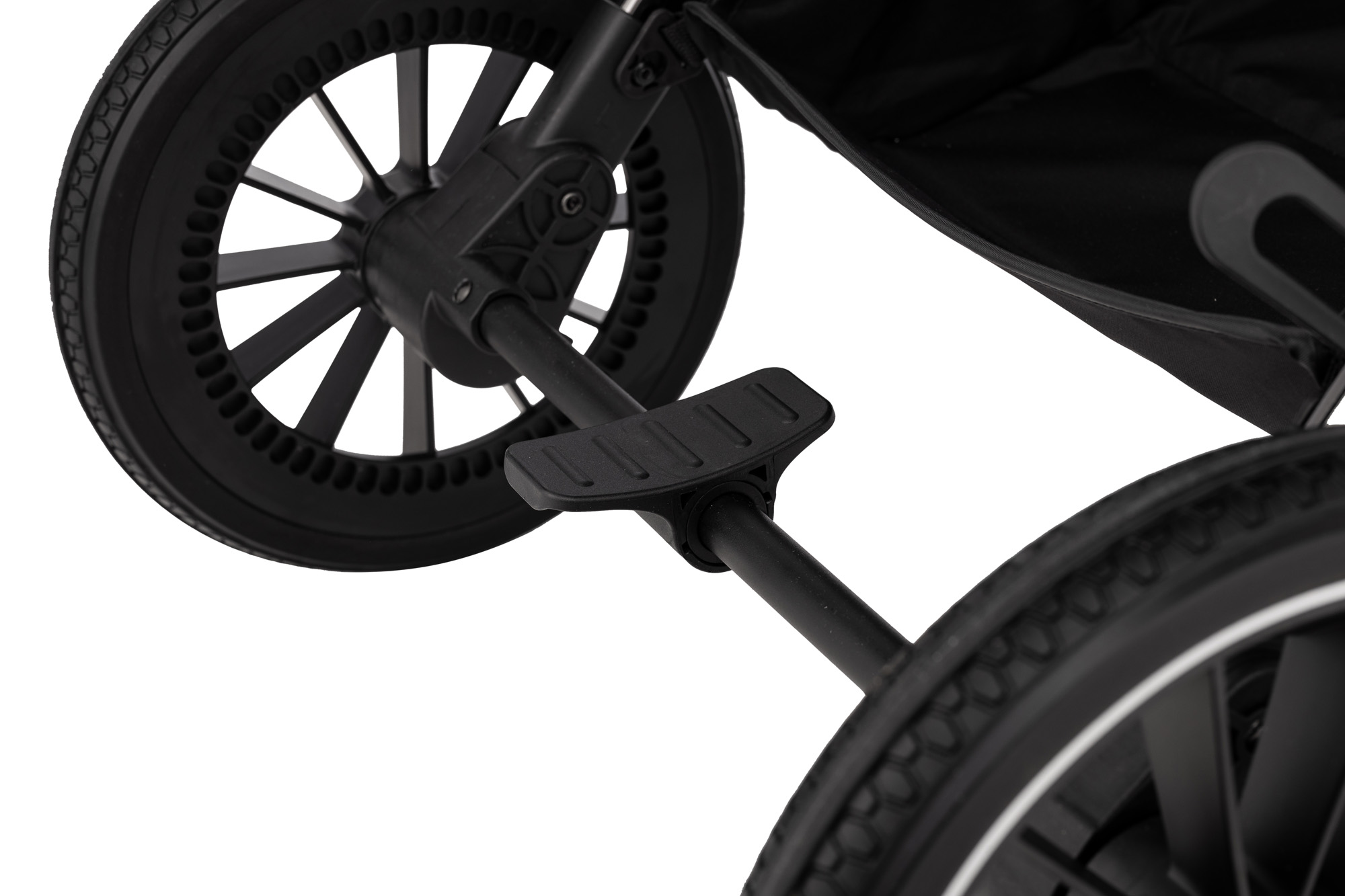 Sportski dio sjedala kolica ima laganu aluminijsku konstrukciju, kožnu ručku podesivu po visini, kožnu zaštitnu prečku, podesiv naslon za leđa u tri položaja, sigurnosne pojaseve u 5 točaka, prikladna su za korištenje do max 22 kg, krović kolica s mogućnošću produljenja i mrežastim dijelom za bolju prozračnost, PU rotirajući prednji kotači s mogućnošću fiksiranja i skidivi, PU stražnji kotači, također skidivi, amortizeri, nožna kočnica, velika prostrana košara za pohranu.