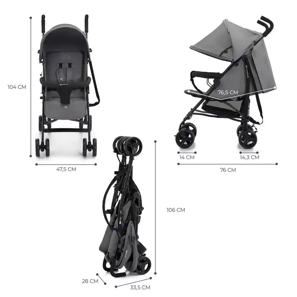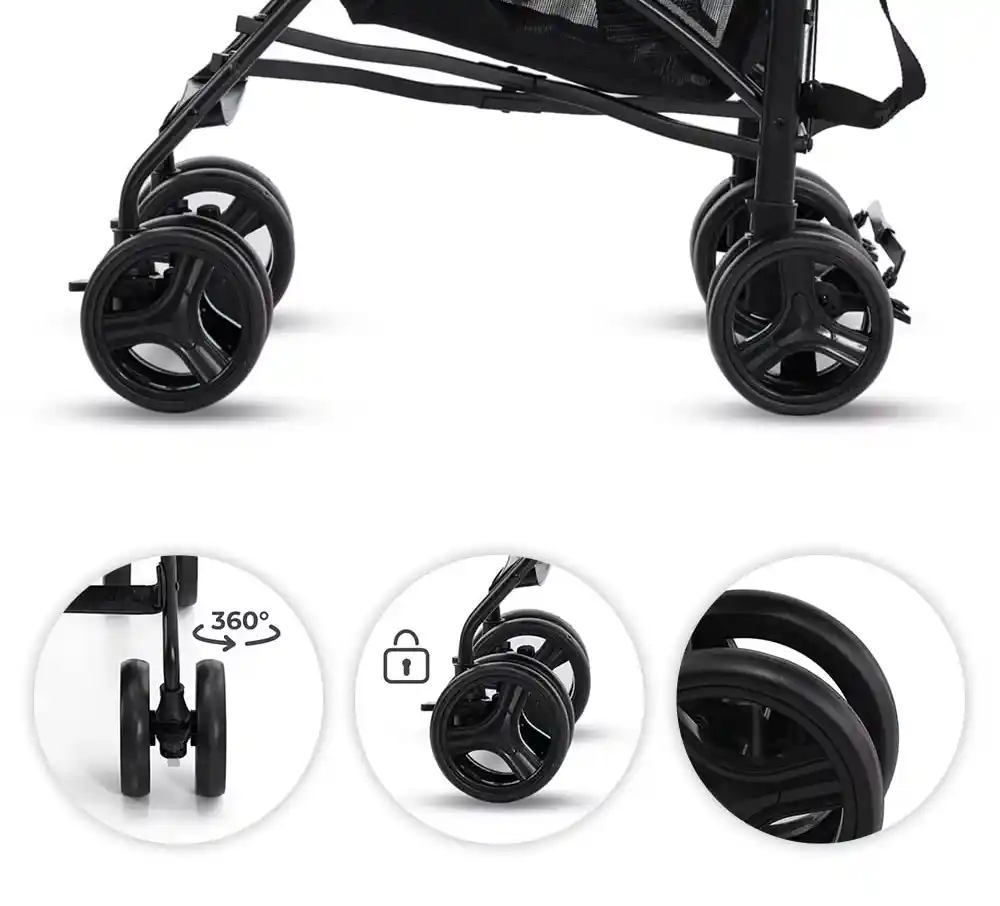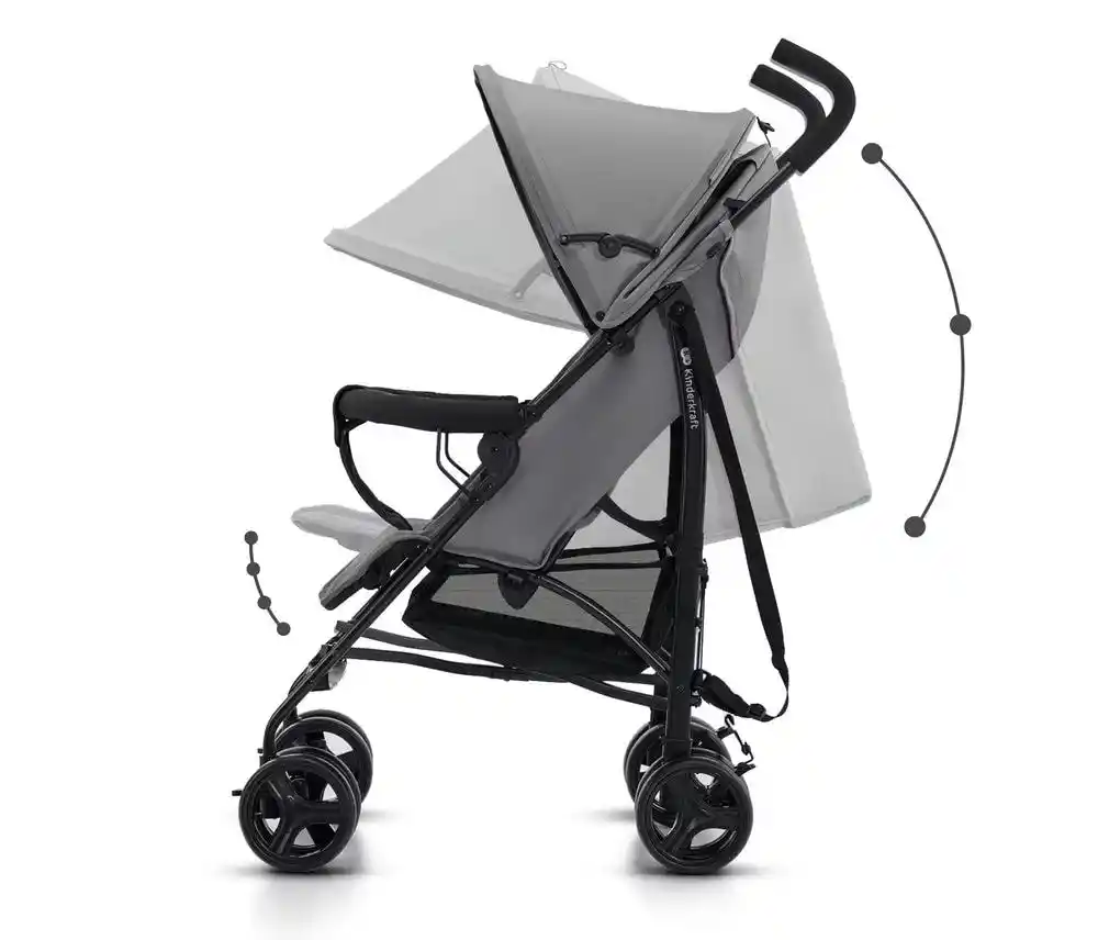 Kolica se lako mogu koristiti u zračnoj luci, u vlaku ili javnom prijevozu. Za lakše nošenje opremljena su udobnom ručkom.Imaju postupno podešavanje naslona do ležećeg položaja i podesivi oslonac za noge.