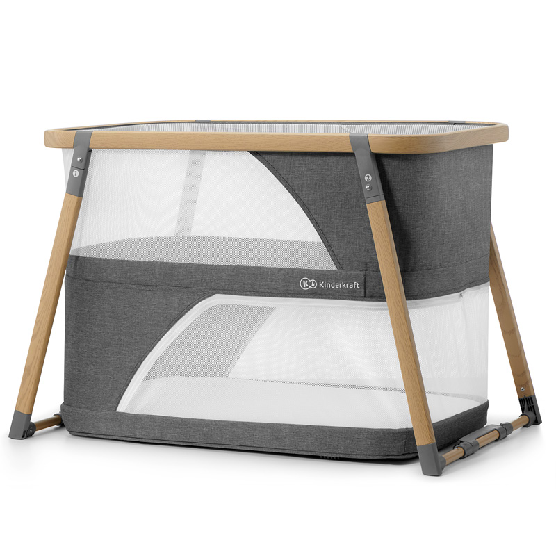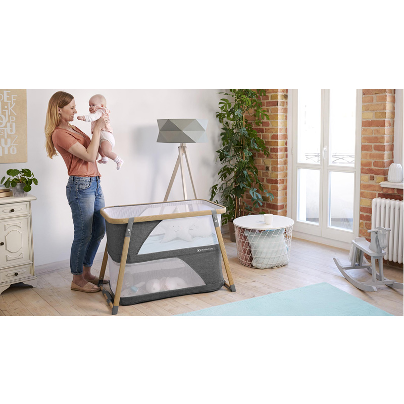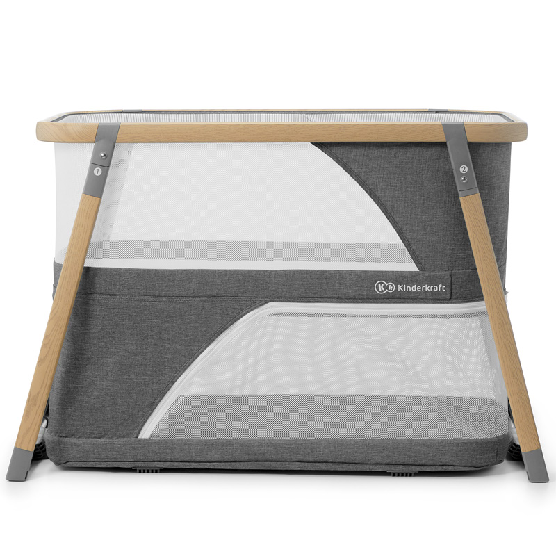 UNUTRAŠNJOST – Bočne stranice dječjeg krevetića dijelom su izrađene od mreže koja osigurava pravilnu cirkulaciju zraka i omogućava djetetu da ostane u kontaktu s roditeljem. Samo otkopčajte madrac i stavite ga na donju razinu kako bi dječji krevet pretvorio u igraonicu. Odvojivi mrežasti zid može poslužiti kao poseban ulaz za dijete. U madracu se nalazi pamučni poklopac koji se lako skida i pere kad se zaprlja.