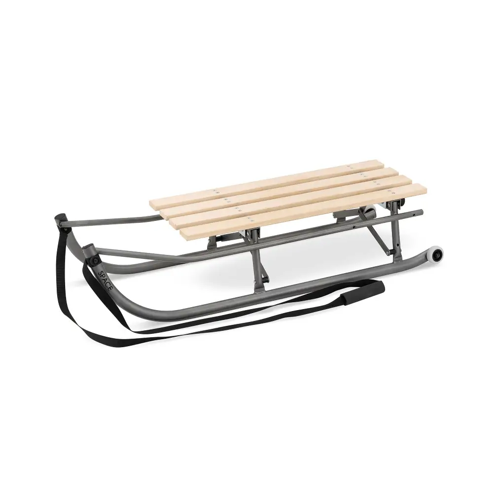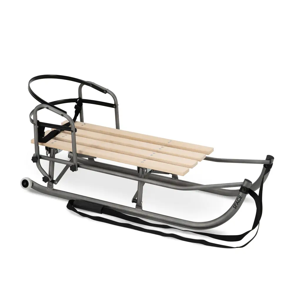 Sklopive Space sanjke s naslonom za leđa vole sva djeca! Čvrsta konstrukcija osigurava udobnost i sigurnost vašeg djeteta. Izdržljive su i otporne na oštećenja, možete ih koristiti dugi niz godina. Space sanjke imaju naslon za leđa, zahvaljujući kojem se vaše dijete može slobodno nasloniti na naslon tijekom zimskih igara, npr. dok se spušta niz brdo.