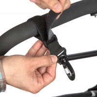 Ove praktične trake s Velcro® trakom i kopčama, prikladne su za vješanje torbi za pelene na gotovo sve modele kolica. Upozorenje: vješanje torbe s prekomjernom težinom može uzrokovati nestabilnost kolica ili u nekim okolnostima prevrtanje. Pazite da ne pretrpate torbu.
