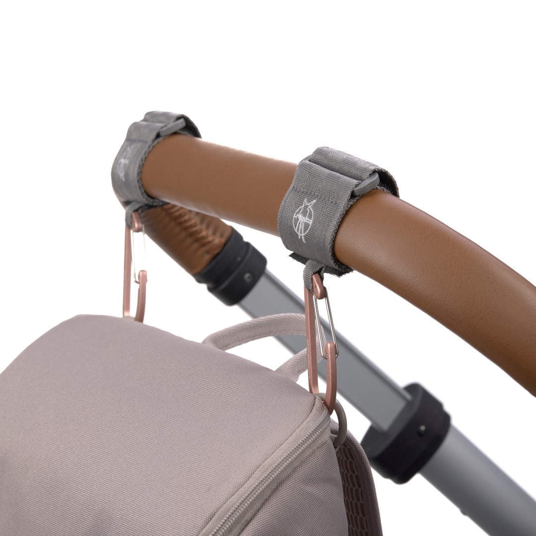 Ove praktične trake s Velcro® trakom i kopčama, prikladne su za vješanje torbi za pelene na gotovo sve modele kolica. Upozorenje: vješanje torbe s prekomjernom težinom može uzrokovati nestabilnost kolica ili u nekim okolnostima prevrtanje. Pazite da ne pretrpate torbu.