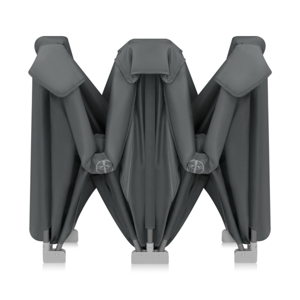 Igraonicu možete sklopiti u trenu – bez alata i bez napora. Easy Fold mehanizam omogućuje brzo rasklapanje i sklapanje na kompaktne dimenzije pritiskom sigurnosnih tipki.