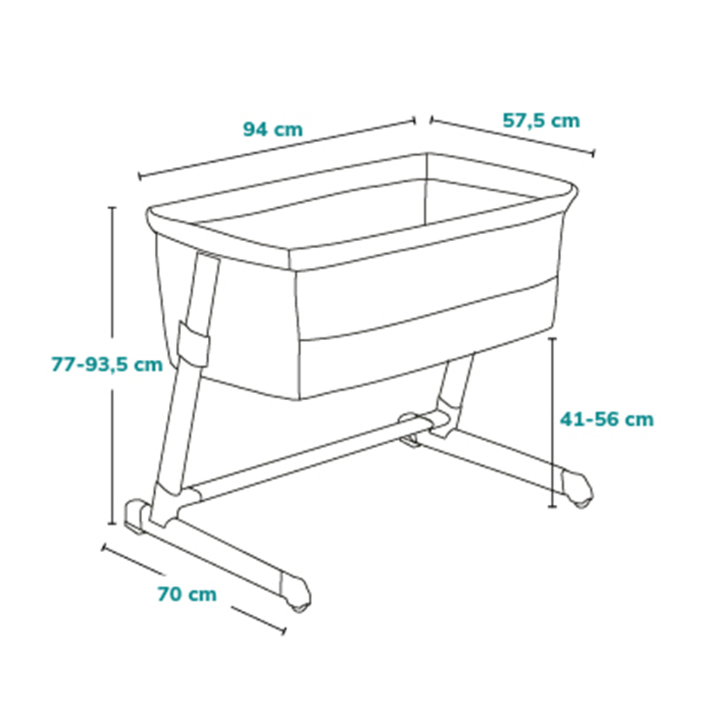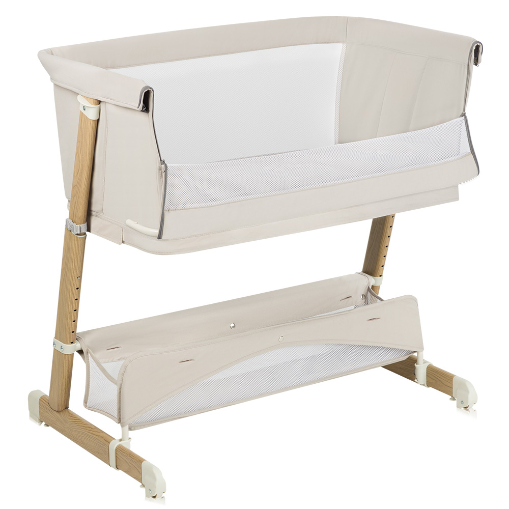 Kada se želite odmoriti uz svoje dijete, samo otvorite bočnu stranicu krevetića i upotrijebite priložene sigurnosne trake za pričvršćivanje kako biste stvorili stabilan zajednički krevet s lakim pristupom vašem mališanu. Visina nogu može se prilagoditi visini roditeljskog kreveta.