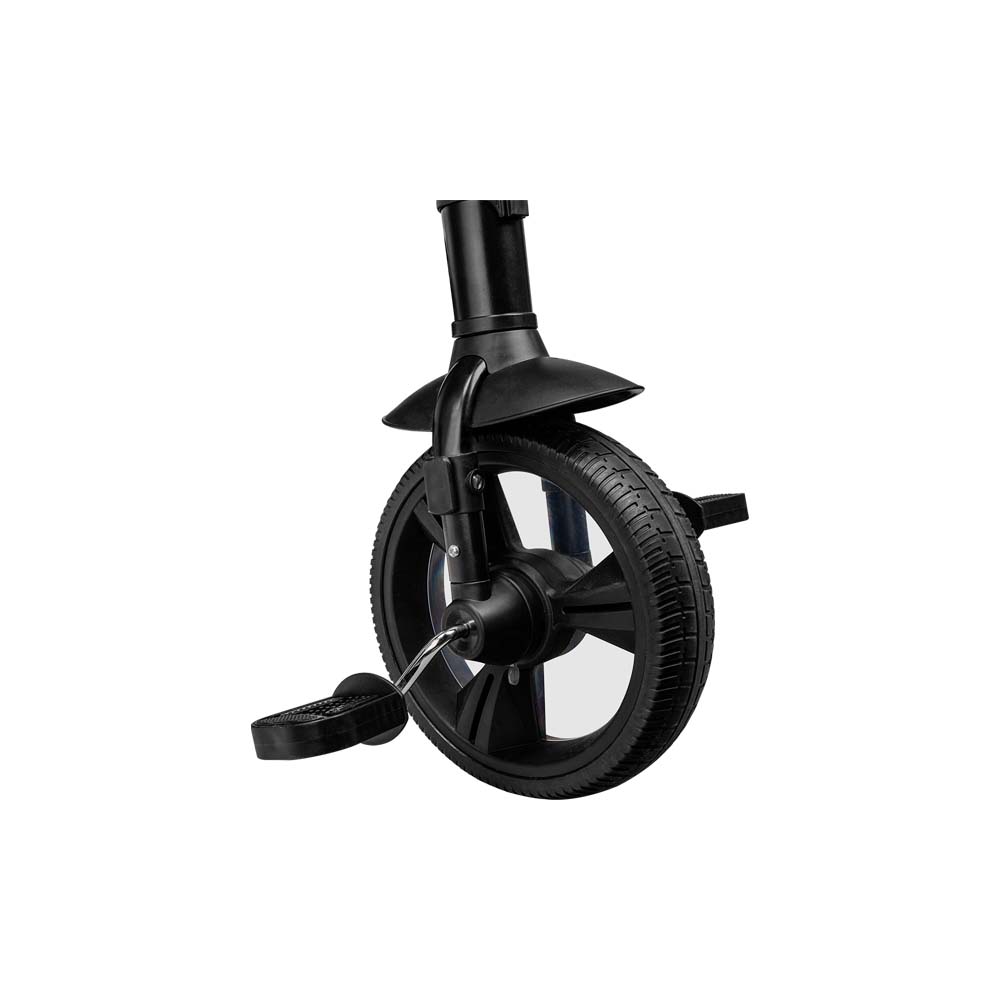 Tricikl s prednjim ili stražnjim sjedištem. Preklopljen krović i oslonac za noge pružaju udobnost djeci, dok pojasevi osiguravaju sigurnost.