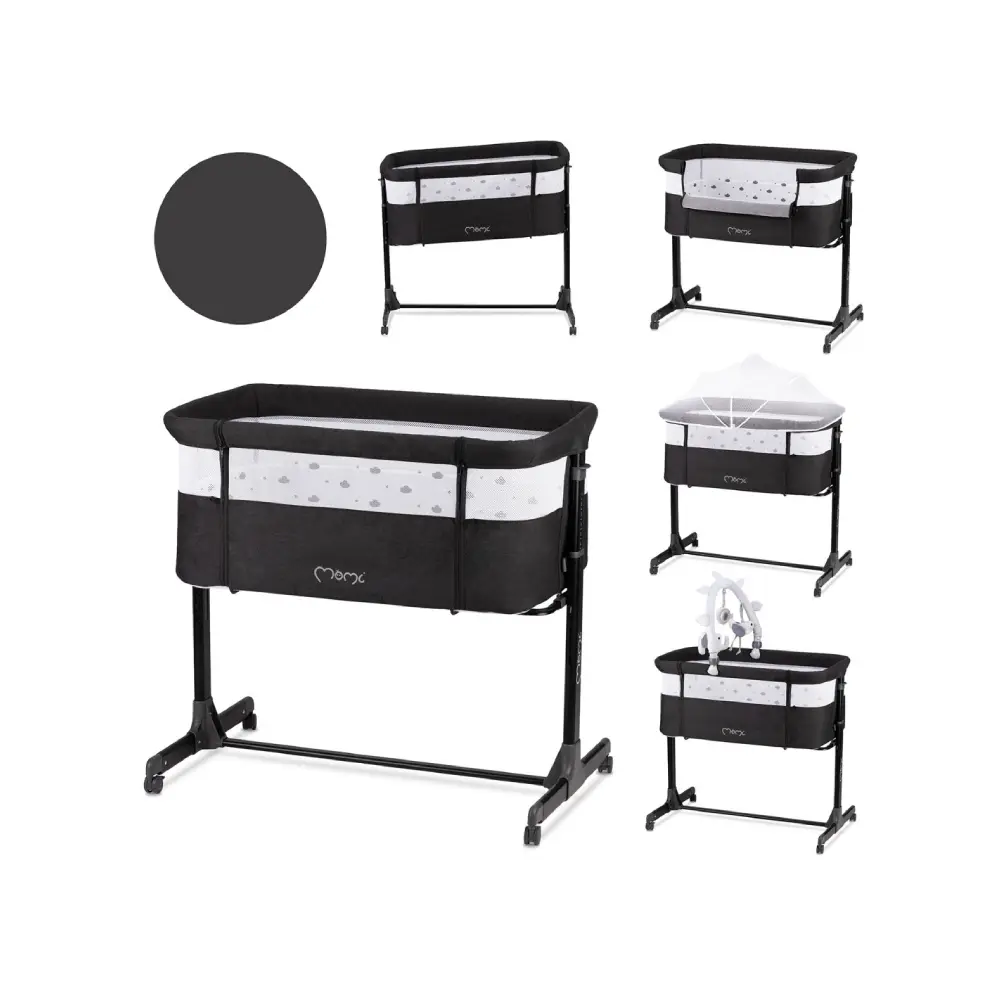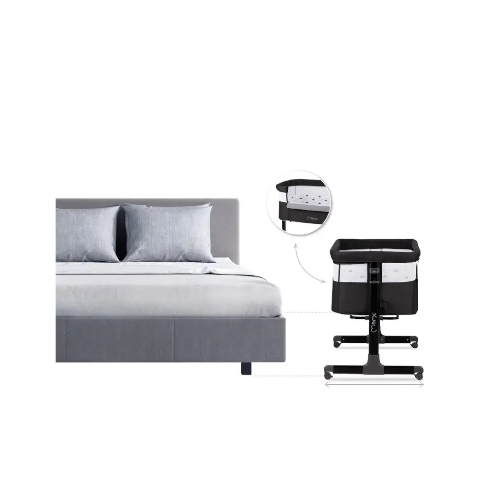 Iznimnu važnost pridajemo povezivanju majke sa svojom bebom od najranijih dana bebinog života. Uz ovaj pažljivo dizajnirani krevetić, vaše je dijete uvijek uz vas. MoMi REVO krevetić može se koristiti kao samostalni dječji krevetić, no jednostavnim otvaranjem patentnog zatvarača, stranica krevetića se uklanja, a krevetić se može u potpunosti sjediniti s majčinim krevetom. Uz 6 razina podesivosti, krevetić možete dodatno prilagoditi visini majčinog kreveta. Kako bi osigurali dijete za vrijeme spavanja, u kompletu se nalazi i sigurnosni pojas kojim dječji krevetić možete pričvrstiti za majčin, a kotačići krevetića se mogu zakočiti. Madrac podesivog nagiba omogućuje vašem djetetu siguran i miran san tijekom cijele noći. U ljetnim mjesecima dijete možete dodatno zaštiti s mrežicom za zaštitu od komaraca. U ovaj set uključen je i luk s igračkama koji će vaše dijete držati zaokupiranim kada je budno.