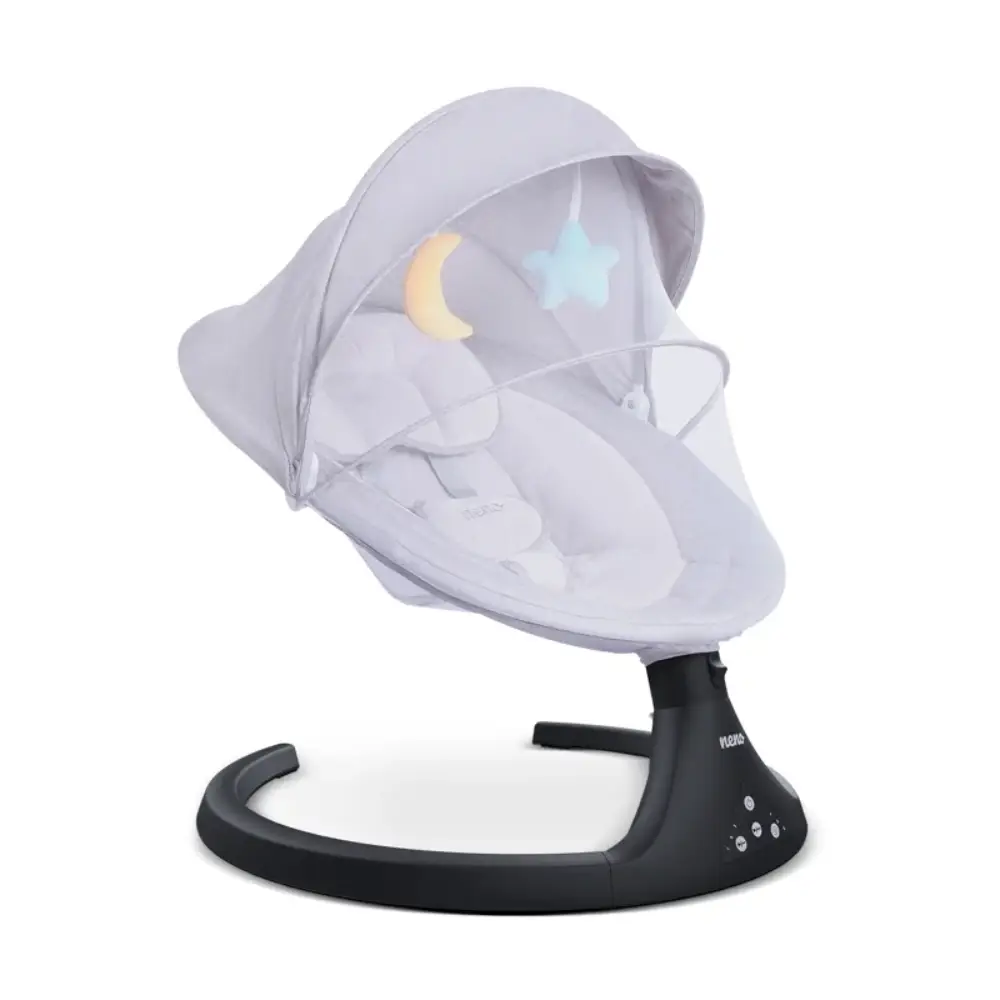 Aurora električna ljuljačka savršena je zamjena za mamino ili tatino naručje. Čvrsti pojas s 5 točaka vezivanja osigurava stabilnost i sigurnost vašeg djeteta. Ljuljačkom možete upravljati putem daljinskog upravljača ili pomoću upravljačke ploče na samoj ljuljački. Pregledna upravljačka ploča s gumbima omogućava jednostavno i brzo aktiviranje svih dostupnih opcija. Za lakše uspavljivanje vašeg mališana možete korisiti neku od unaprijed učitanih uspavanki.