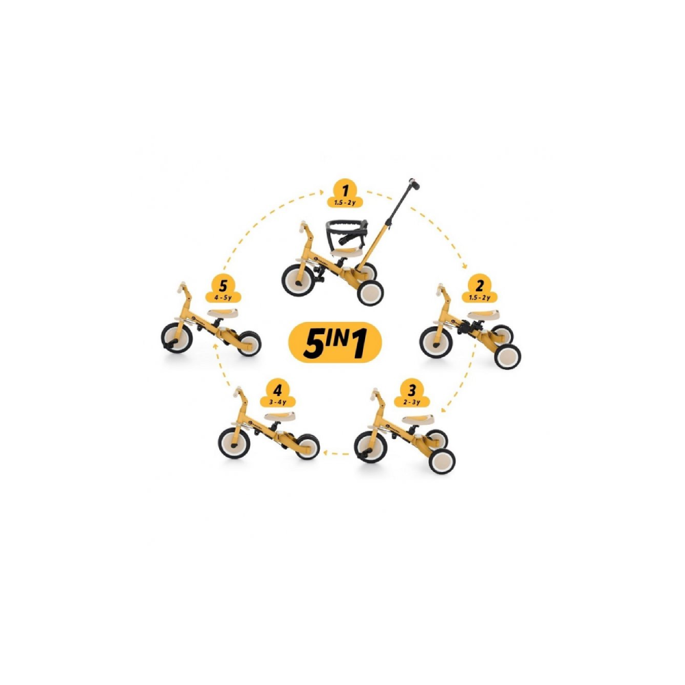 Višenamjenski tricikl namijenjen djeci od 1,5 do 5 godina ili do 25 kilograma. To nije samo vozilo za kretanje i učenje ravnoteže, već i suputnik djetetu koje raste tijekom mnogih faza razvoja.