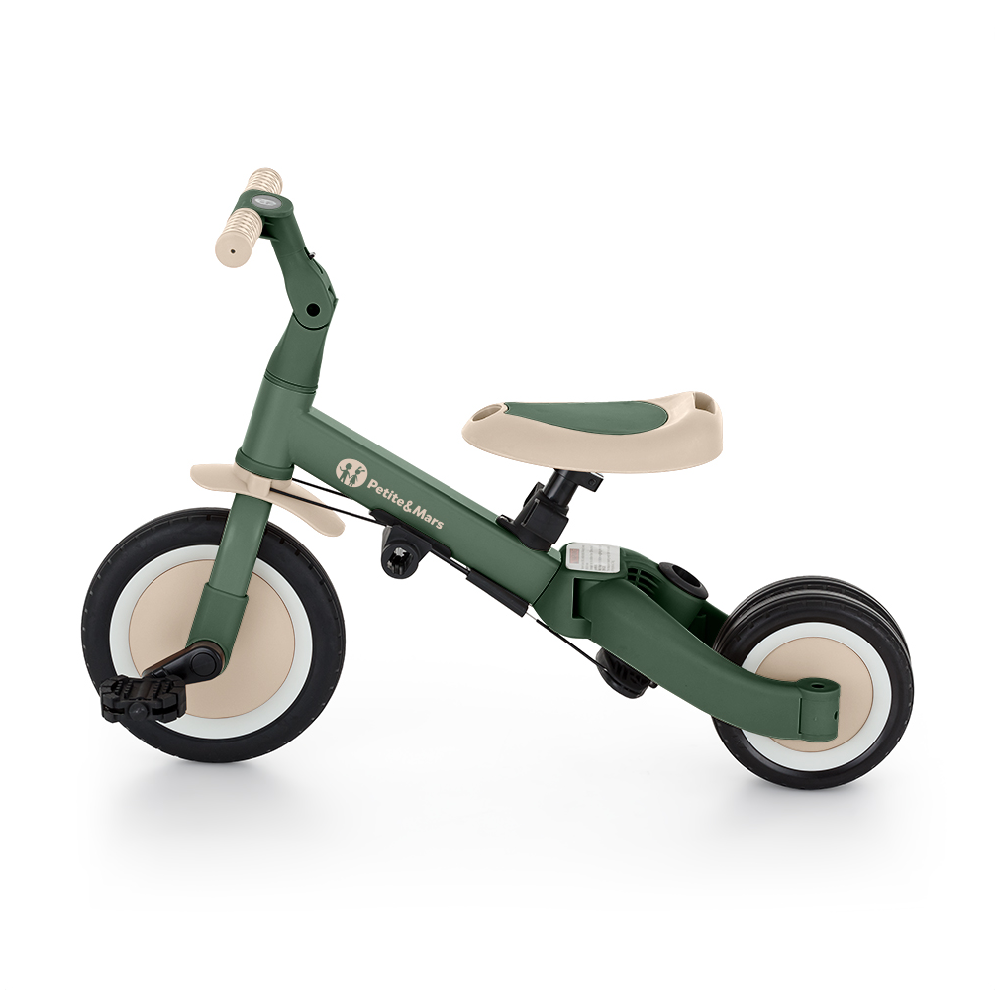 Dobro promišljena transformacija bicikla prilagođava se potrebama mališana kako njegove motoričke sposobnosti rastu. U početku je riječ o triciklu s mogućnošću pomoći roditelja, dok je konačna verzija standardni bicikl s pedalama, bez dodatnih potpornih elemenata.