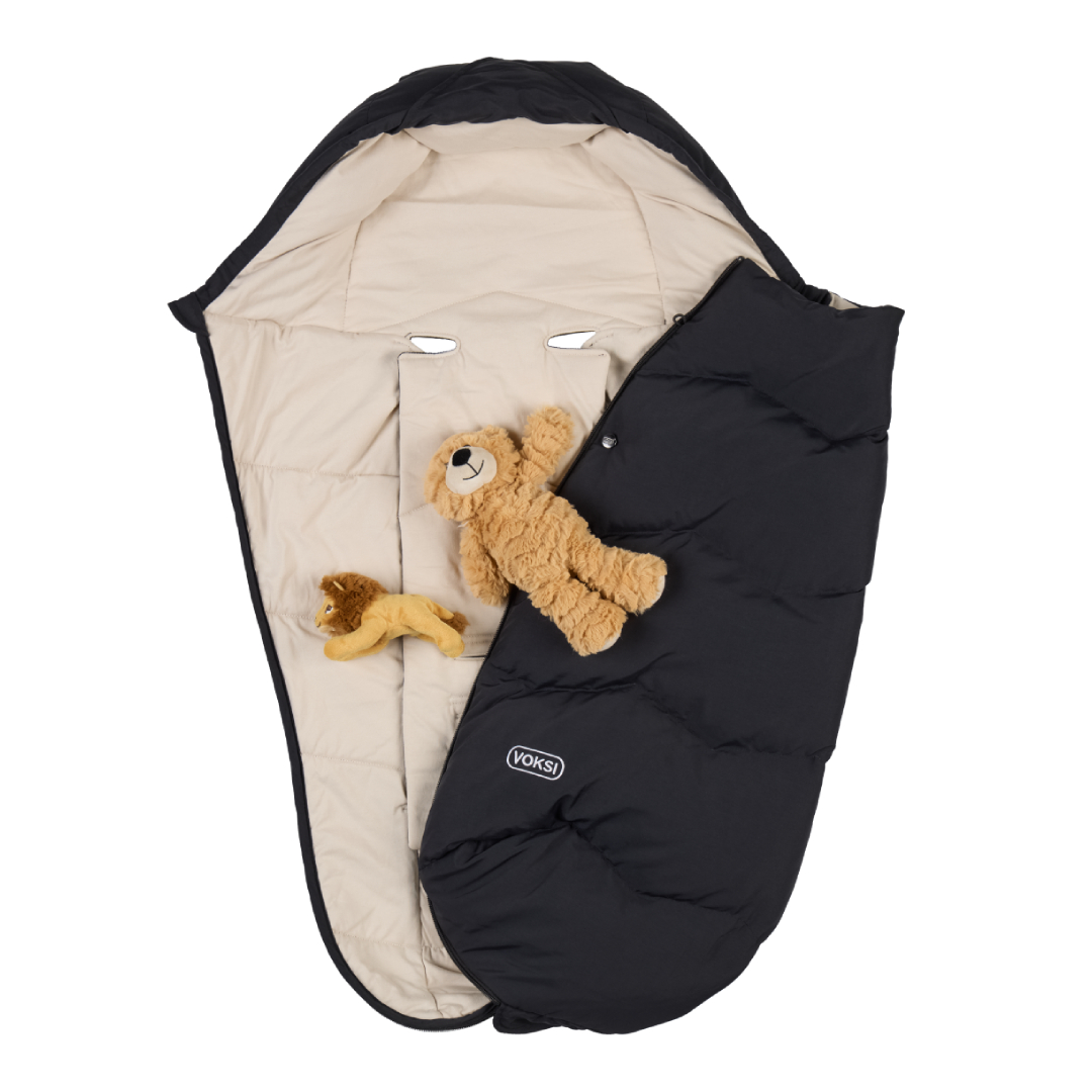 Voksi® Explorer sastoji se od prirodnih i visoko kvalitetnih materijala kao što su vuna i paperje. Zimska vreća ima prozračnu vunu na leđima koja apsorbira vlagu i time osigurava optimalnu temperaturu. Punjena je paperjem koje pruža jedinstvenu izolaciju i grije dijete. S vanjske strane vreća je presvučena BIONIC-FINISH®ECO premazom koji odbija vodu i štiti od snijega, vjetra i kiše. Svi materijali u Voksi® Exploreru imaju certifikat OEKO-TEX®standard 100, klasa 1, što je oznaka kvalitete koja označava da niti jedan materijal u proizvodu ne sadrži štetne kemikalije. Trakica oko područja glave omogućava prilagodbu vreće u različitim vremenskim uvjetima. Bočni otvori služe za preklapanje prednjeg dijela za optimalnu ventilaciju i dobru vidljivost kada dijete želi istraživati svijet iz udobnosti kolica. Patentni zatvarač omogućava brzo odvajanje te se stražnji dio može koristiti kao obloga sjedišta ili kao podloga za igru. Jedinstveni dizajn otvora za naslon omogućuje da se ova vreća lako uklopi i koristi u autosjedalicama i dječjim kolicima s različitim pojasevima. Protuklizni materijal na stražnjoj strani osigurava da vreća ostaje na mjestu u kolicima. Kada se koristi u autosjedalici, Voksi® Explorer pruža izolaciju koja zamjenjuje debelu zimsku odjeću. Na taj način pojas je pozicioniran bliže djetetovom tijelu. Patentni zatvarač se brzo otvara, što omogućuje lak pristup djetetu u autosjedalici. Voksi® Explorer zimska vreća testirana je u sudaru s BeSafe autosjedalicama te se zbog otvora na leđima prilagođava svim ostalim autosjedalicama.